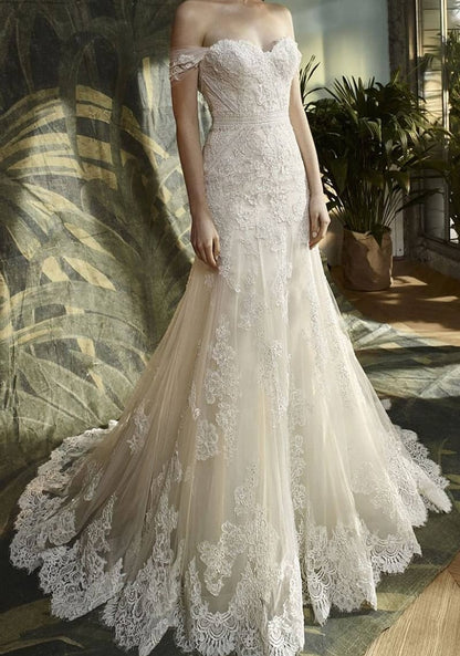 Ein Kleid, das für eine echte Märchenhochzeit geeignet ist - dieses modifizierte Kleid aus Tüll und Perlen aus A-Linie in voller Länge verfügt über die süßesten abnehmbaren Flügelärmel für einen zarten schulterfreien Effekt. Gemusterte Spitze in der Taille schafft eine figurschmeichelnde Silhouette, während ein unsichtbarer Reißverschluss hinten den Look vervollständigt.