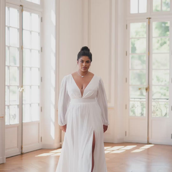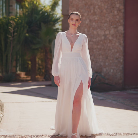 Elegantes Brautkleid "JULIANA" mit langen Ärmeln und Beinschlitz – V-Ausschnitt & Chiffon-Rock